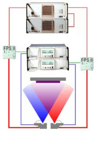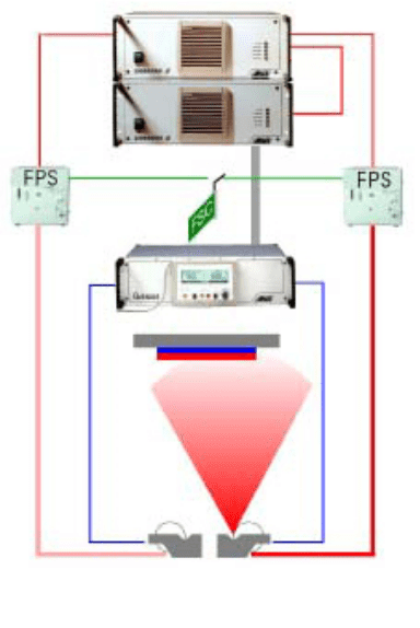 For simultaneous evaporation from several electron beam evaporators, each source is driven by its own individual Genius unit. In this configuration, the evaporators can be powered from a single Carrera high voltage power supply because the emission current is directly recorded by the filament power supply FPS-II.