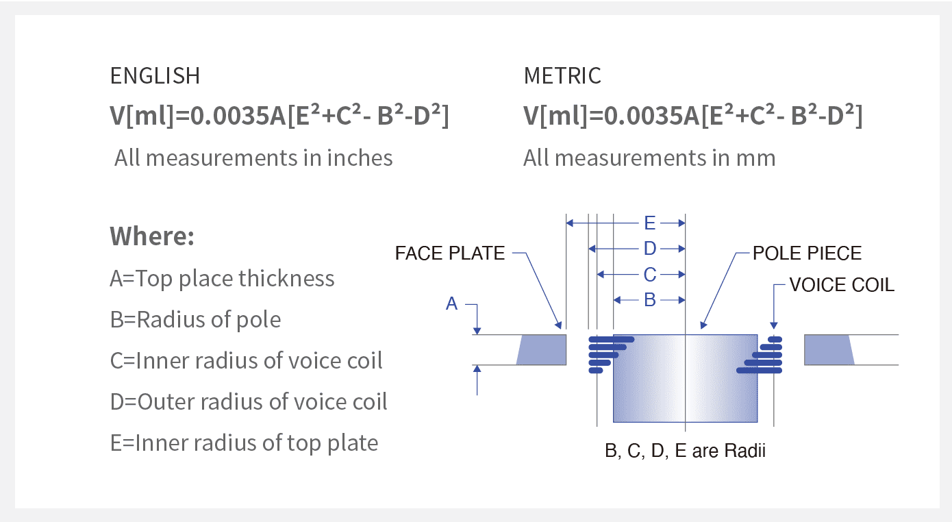 The optimum quantity of ferrofluid for a loudspeaker is determined by the physical dimensions of the air gap and voice coil and can be calculate with the use of the following formulae: