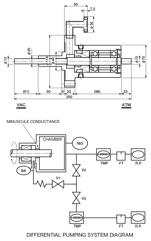 2. The differential pumping chamber and main chamber are separated by minuscule conductance. Leaked gases and outgases from baking are emitted to prevent the contamination of the main chamber.