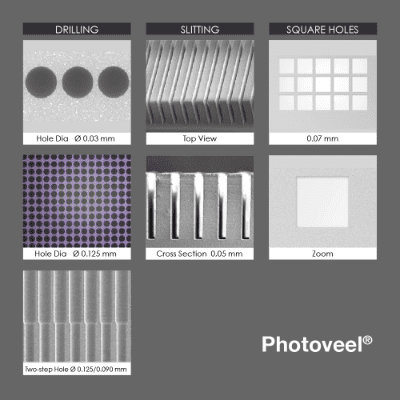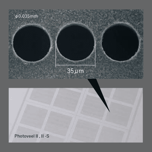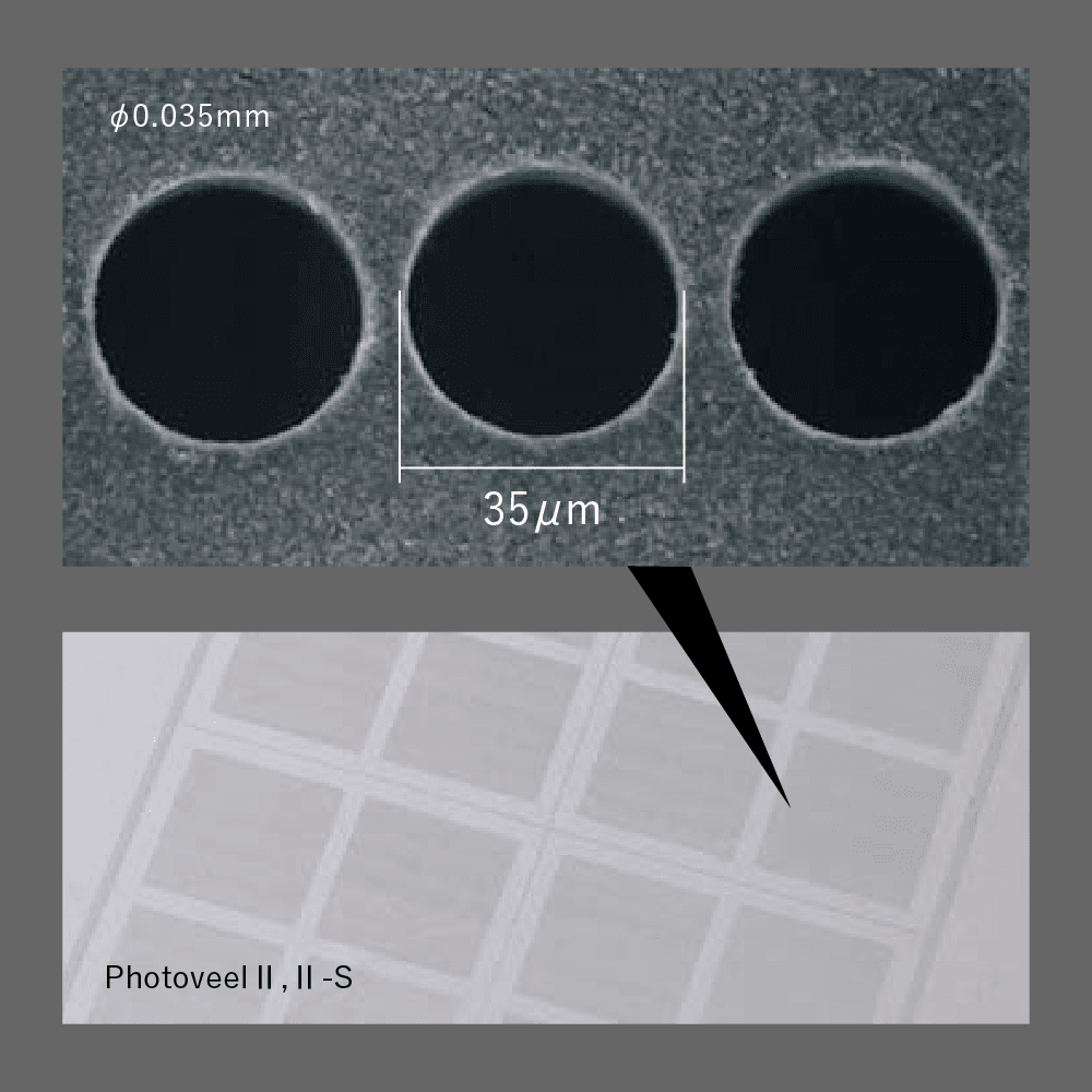 | Microscopic hole drilling | Minimum φ30μm,diameter and pitch tolerance ±5μm | |