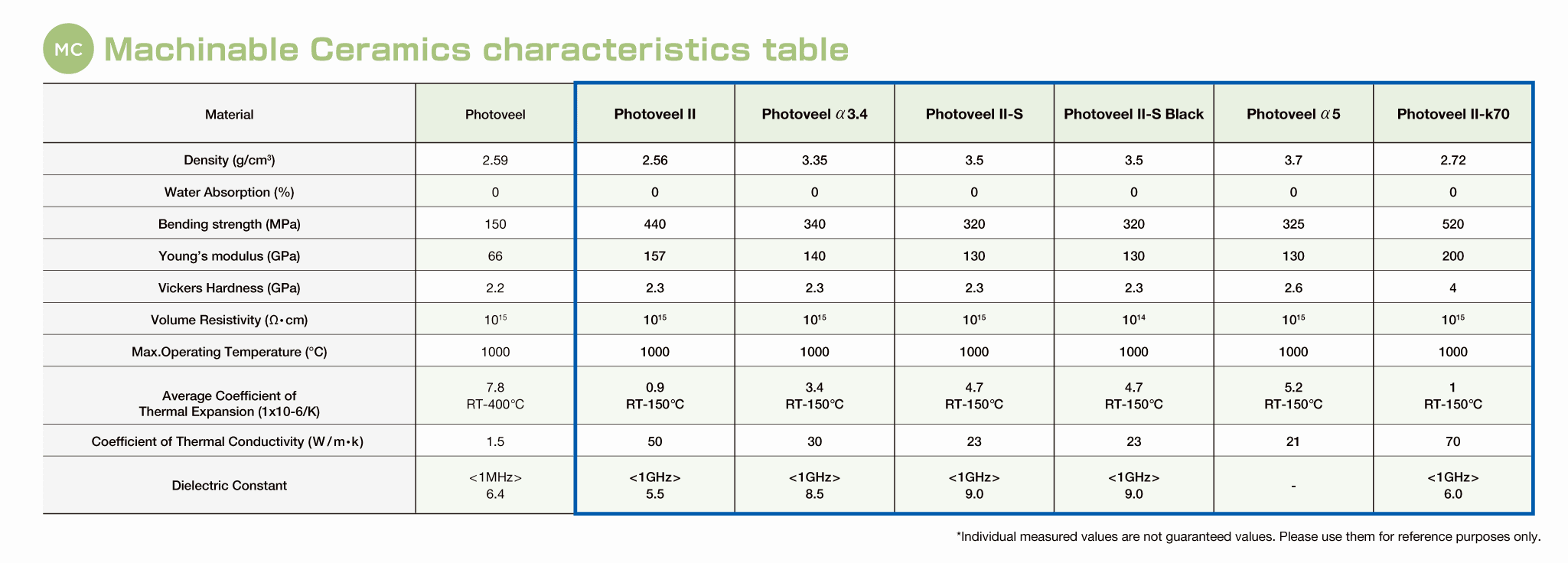 The ceramics are composed by boron nitride and fine ceramics which realize compatibility of high mechanical strength and machinability. It is particularly suitable for small parts with high precision machining.