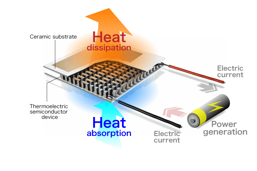 A thermo-electric module is a semiconductor electronic component also called the Peltier Element, or Thermoelectric Element and operates as a compact heat pump.