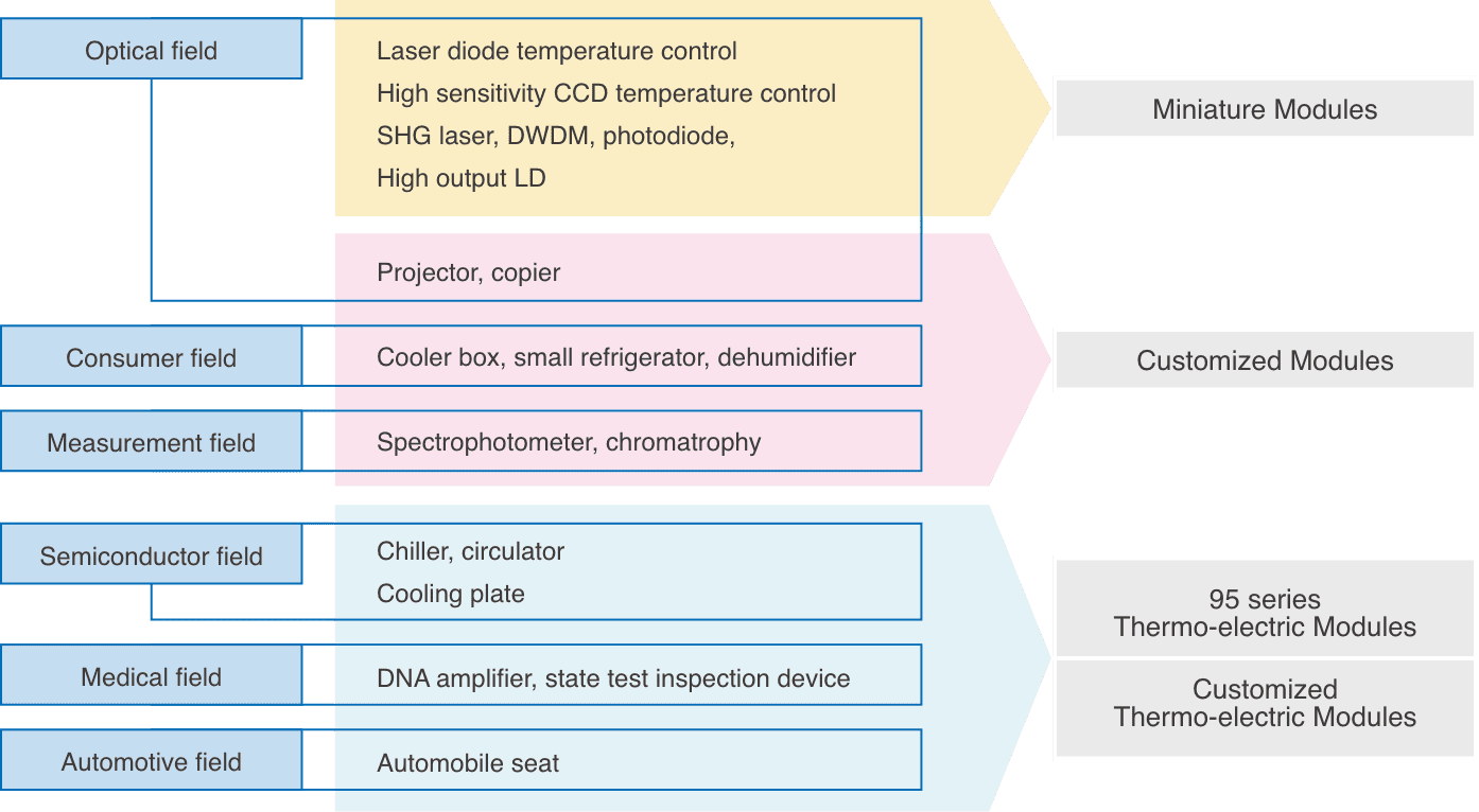 We are working actively on the development of fluorocarbon-free cooling units using thermo-electric modules. We can also manufacture customized cooling units.
