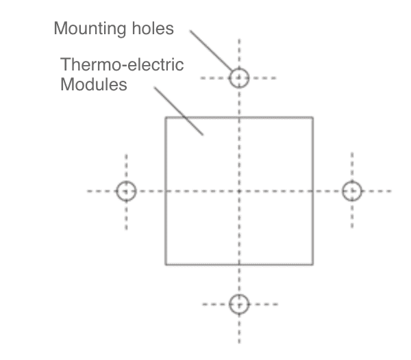 Position each mounting hole on the line passing through the center of each side of the thermo-electric module, as shown in Figure 1.