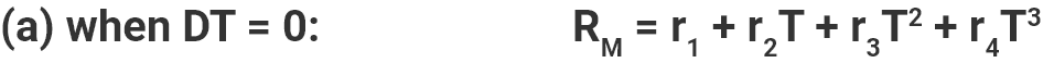 11.2.2 MODULE RESISTANCE: The electrical resistance of a thermoelectric module, as a function of temperature, can be expressed as third order polynomials for the two conditions (a) and (b):