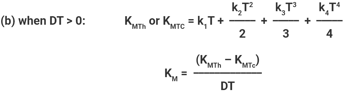 11.2.3 MODULE THERMAL CONDUCTANCE: The thermal conductance of a thermoelectric module, as a function of temperature, can be expressed as third order polynomials for the two conditions (a) and (b):