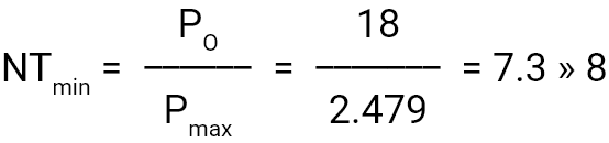 The required power for the load has been calculated as 18 watts. It is now necessary to determine the minimum number of modules needed to meet this load requirement. The maximum output power from one module is: