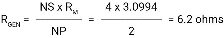 With a group of eight modules, the next most logical connection configuration is two parallel strings of four modules, i.e., NS = 4 and NP = 2. Generator resistance for this configuration is thus: